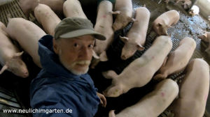 Aber, gibt es dafuer vielleicht Gruende? Ist der Landwirt nicht vielleicht auch nur ein Opfer des Systems? Handelt der Landwirt nicht genau so wie wir alle? Wir alle wollen Geld verdienen und unsere Familien ernaehren. Reagiert der Landwirt nicht einfach nur auf die Rahmenbedingungen, denen er sich gegenueber sieht? Ich bin sicher, kein Landwirt sperrt seine Tiere in enge Staelle ein, weil es Spass macht. Kein Landwirt vergiftet aus Jux und Dollerei die Umwelt und auch kein Landwirt freut sich ein Loch in den Bauch, wenn wieder ein Grundwasserbrunnen wegen zu hohem Nitratgehalt geschlossen werden muss.