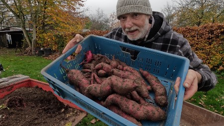 Lassen Sie mich bloss in Ruhe mit dem Thema Garten. Mitten im November, bei andauernden Regenschauern und nicht wirklich angenehmen Temperaturen. Da habe ich im Garten nicht viel verloren. Es sei denn, ich muss mal wieder etwas ernten. So wie heute. Süsskartoffeln.